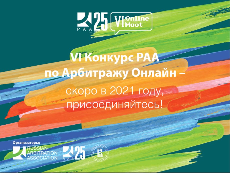 Журнал "Третейский суд" выступил информационным партнером VI Конкурса по Арбитражу Онлайн. Конкурс проводят Арбитражная Ассоциация (РАА) и РАА25 при поддержке факультета права НИУ ВШЭ. Для участия в конкурсе приглашаются студенты всех юридических факультетов России и стран СНГ.