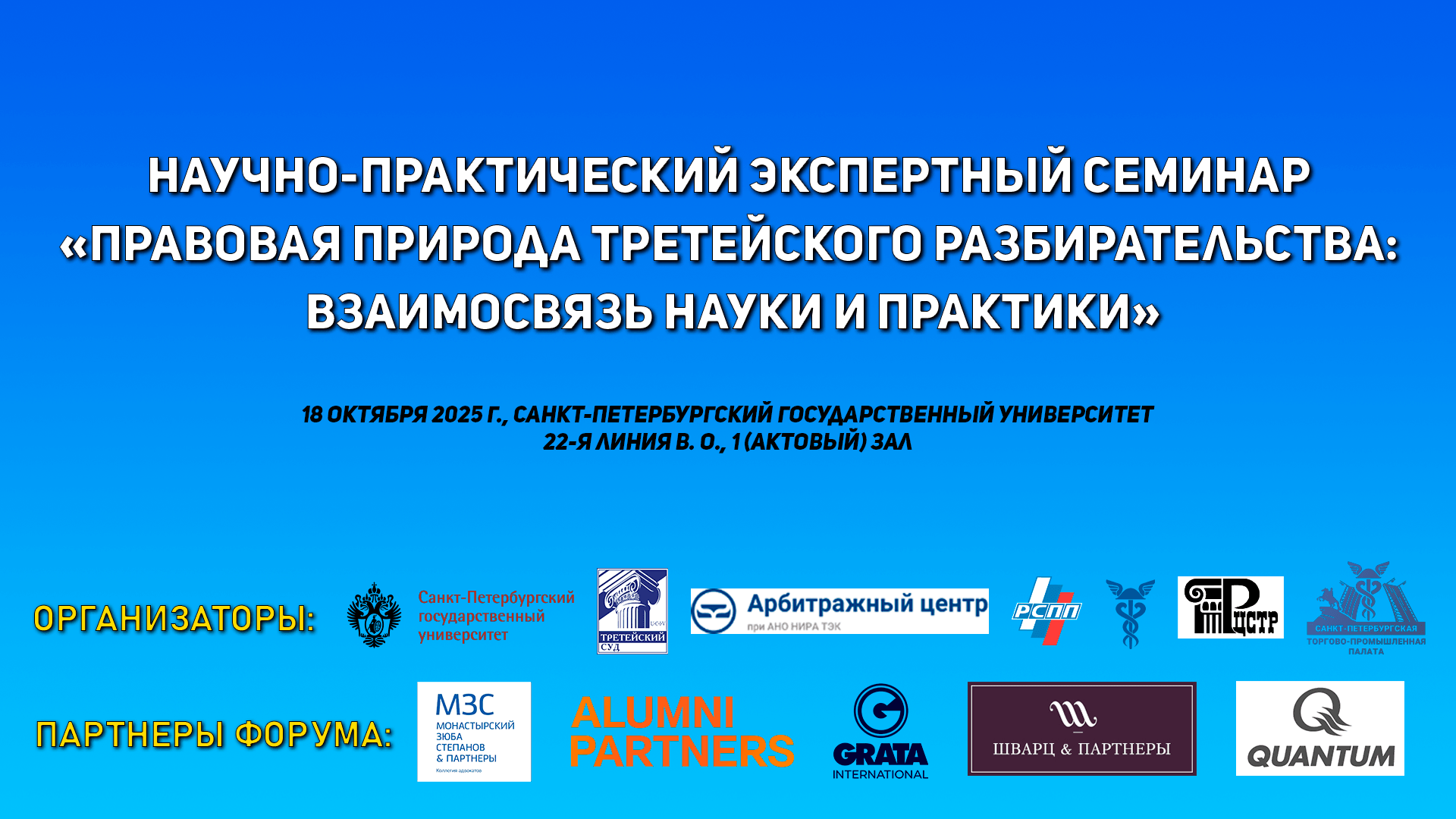 18 октября 2025 года в Санкт-Петербургском государственном университете пройдет — научно-практический семинар «Правовая природа третейского разбирательства: взаимосвязь науки и практики».
